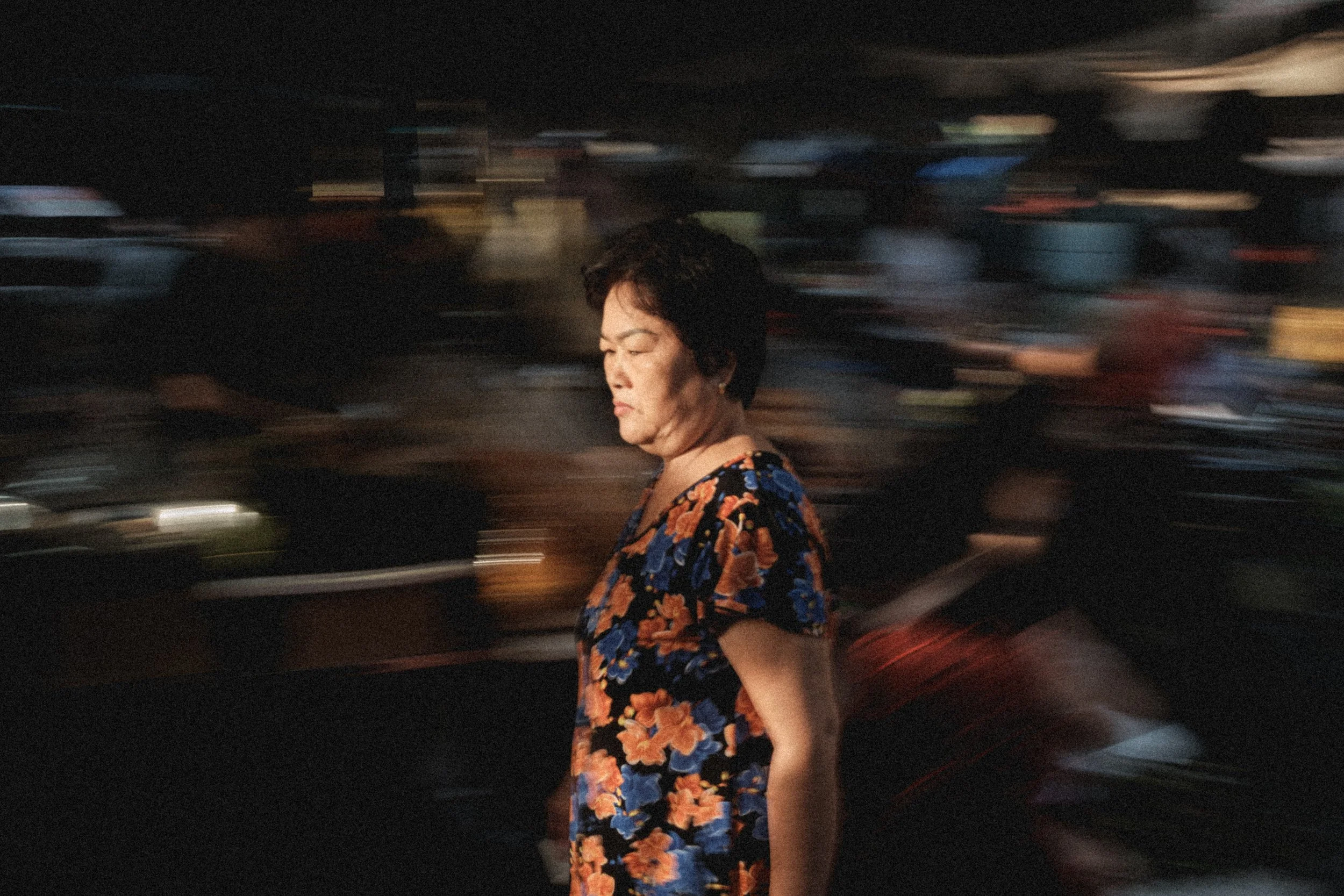 There’s something deeply expressive about the controlled blur of slow shutter speed. It transforms an ordinary street scene into something cinematic, something closer to memory than to reality.