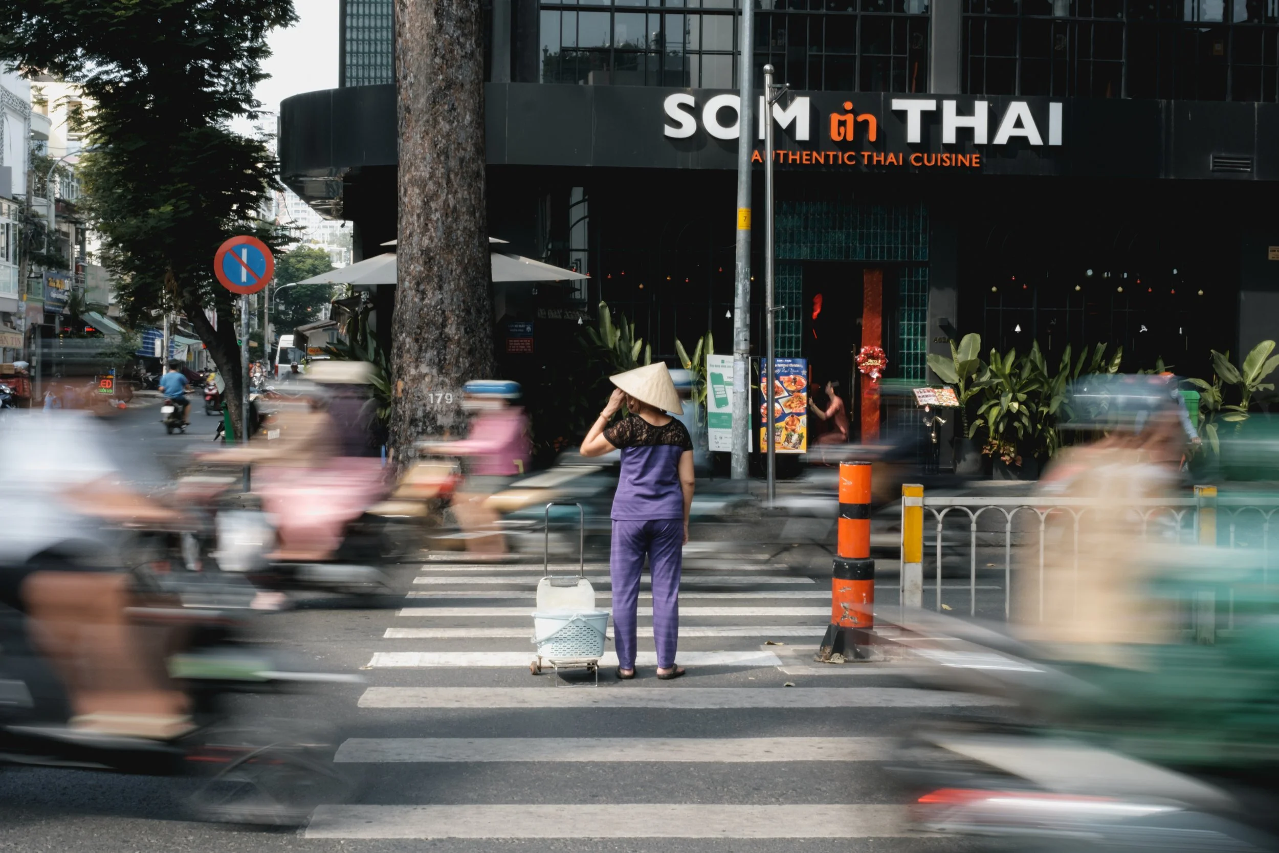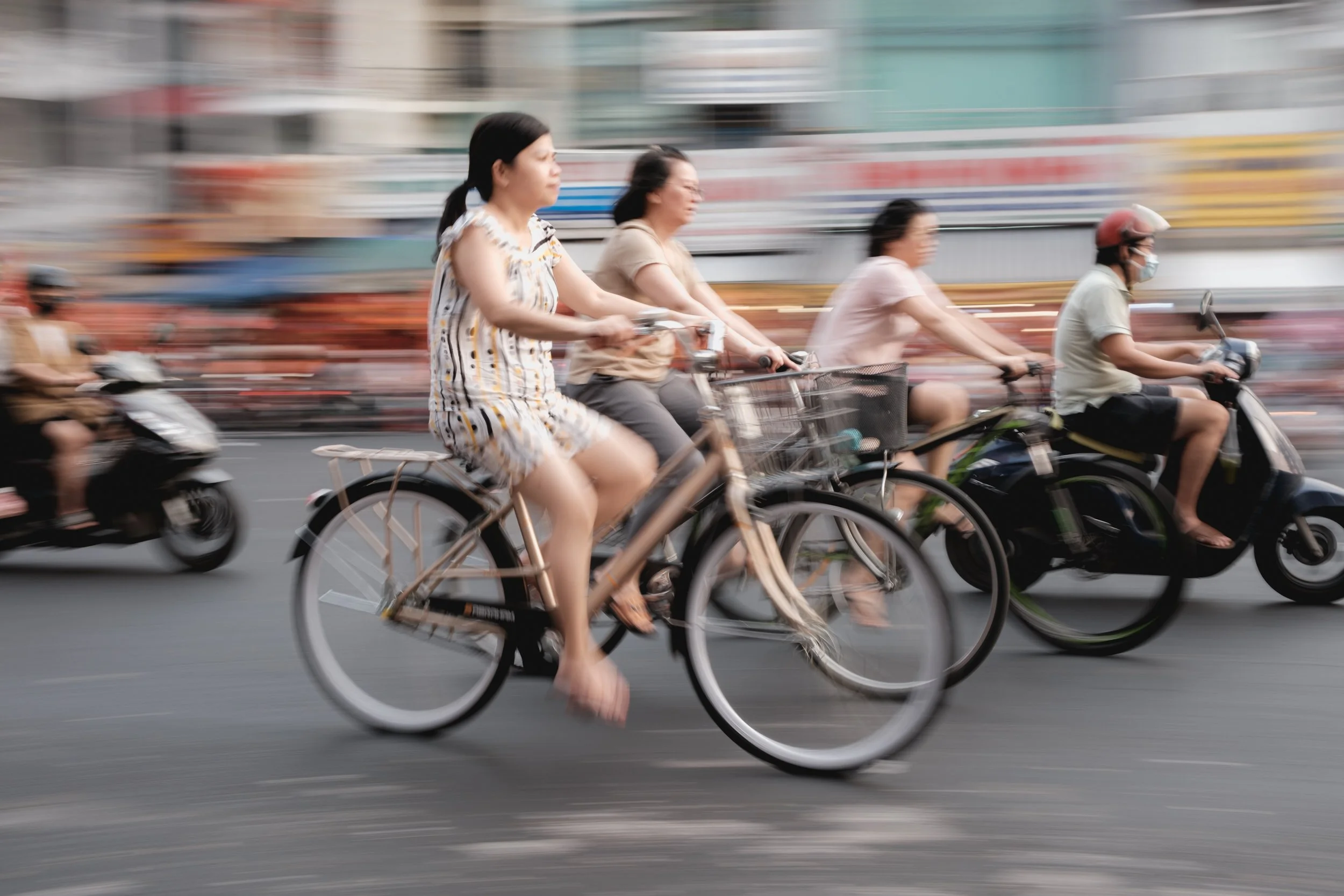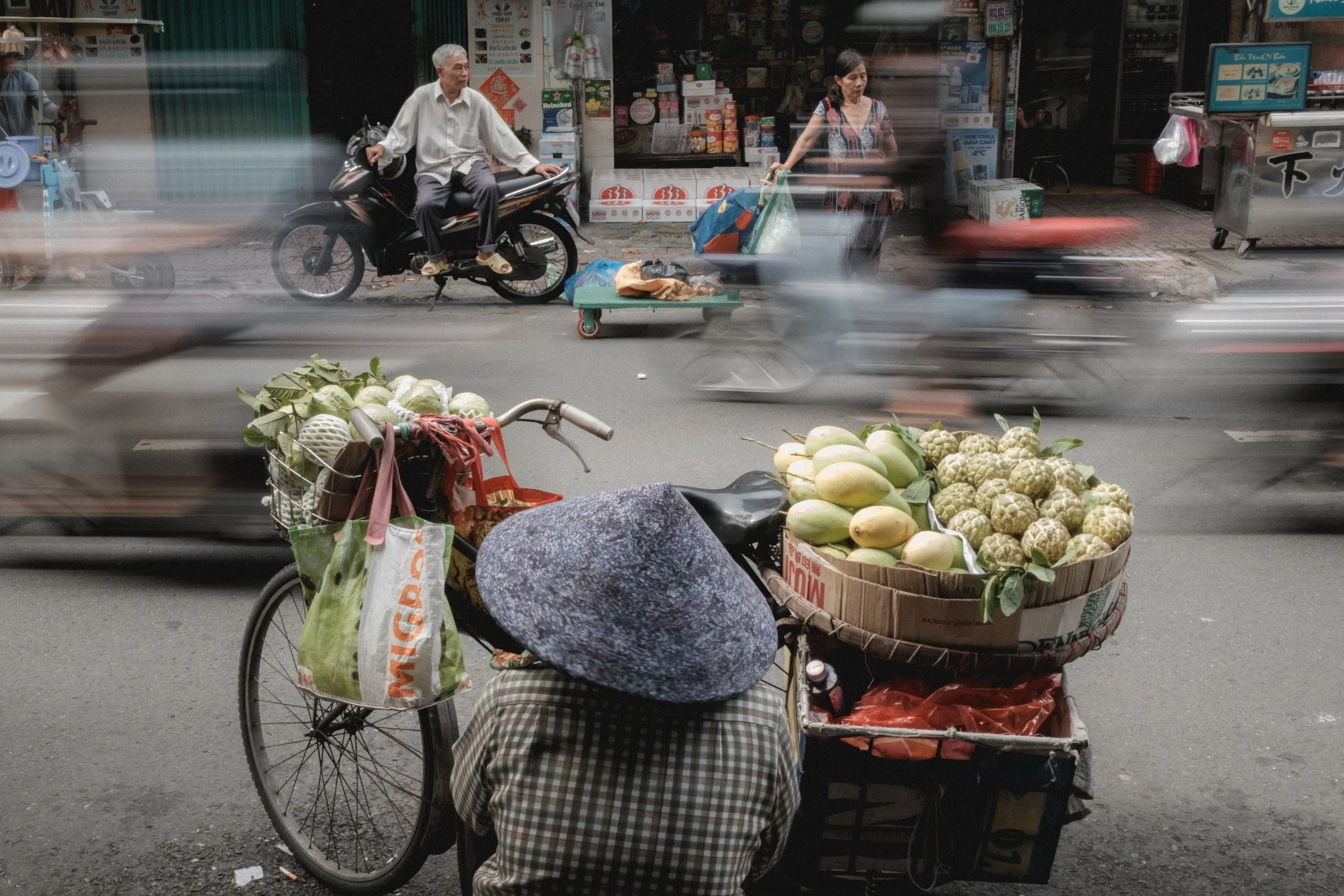 Most street photography thrives on sharp, well-defined subjects - faces frozen in time, gestures caught at just the right second. But slowing the shutter introduces something different: motion blur, an impressionistic quality that blends movement and stillness in a single frame. With this approach, I aimed to capture not just the people and places of Saigon, but the feeling of being in the middle of it all - the rush, the chaos, the poetry of everyday life.